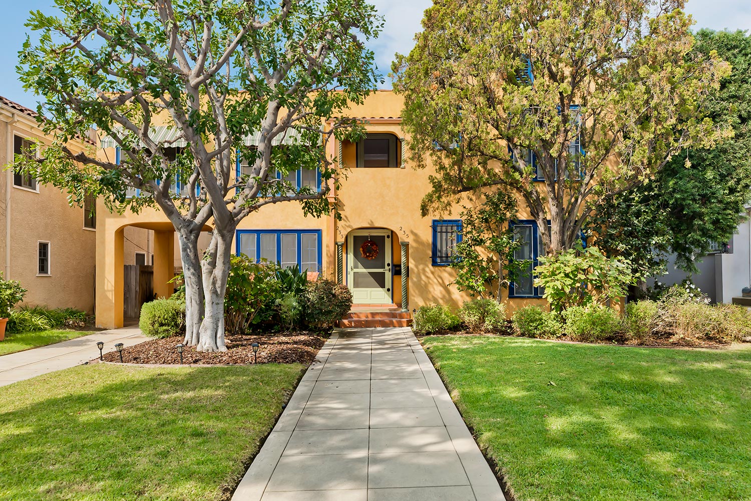 This beautiful 2-story Mediterranean duplex is located on quiet tree lined street just minutes away from Larchmont Village. The property consists of nearly 3,000 sq ft living area with charming outdoor space. The upper unit boasts a 2 bedroom + 2 bath with formal living & dining rooms, kitchen with sitting area, cozy den and light-filled sunroom overlooking the yard + balcony. The lower unit offers 2 bedrooms + 1.5 baths, formal living & dining rooms, sweet breakfast and sun rooms and front patio. Both units have original hardwood floors, beautiful crown moldings and decorative fireplaces with Batchelder tile. Beautiful backyard with fruit trees, rose garden and fountain, 3 car garage. Turnover is quite rare and many of the neighbors are owner/users.